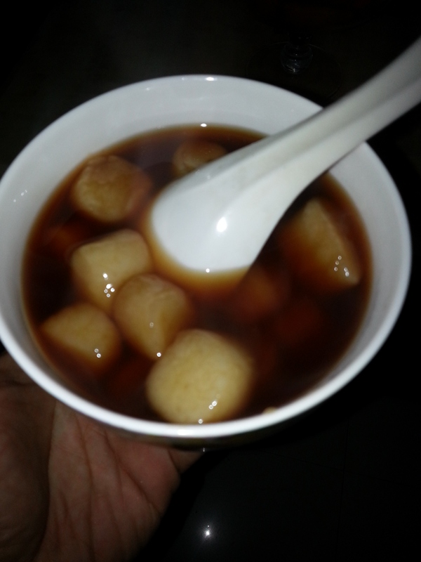 因为刚好碰上是冬至,好朋友的妈妈已经一大早给我们准备好的早餐,真的是“世上只有妈妈好”,汕尾的汤丸,没有馅的,但用红糖加了很多的姜,能驱寒。
