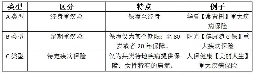 B类型:为保险人提供在某个阶段内的重疾保障。