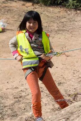 ↑沙丘绳降是一项讲求身体协调的活动,同时锻炼孩子面对困难时如何淡定解决。