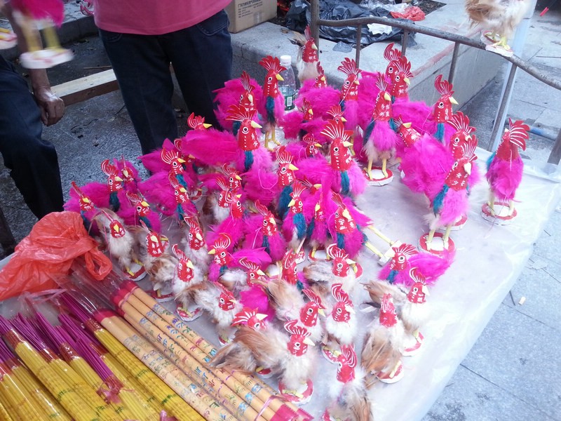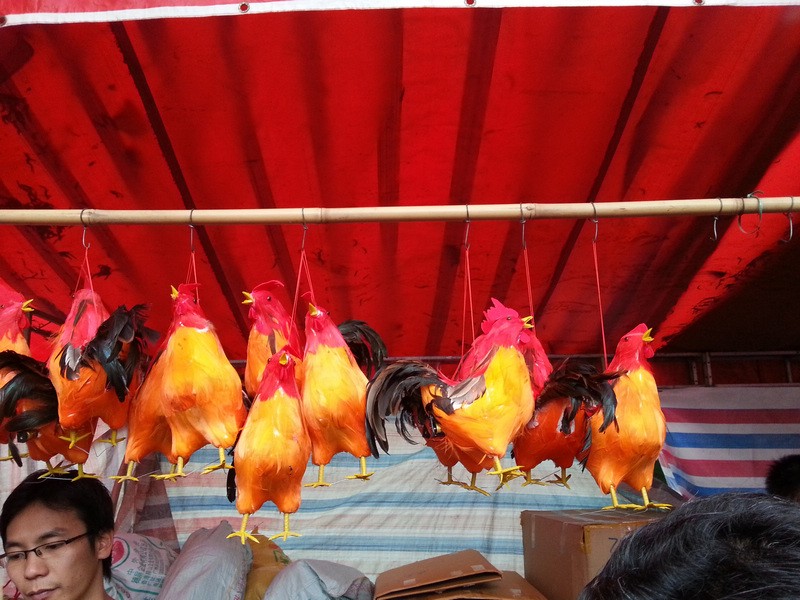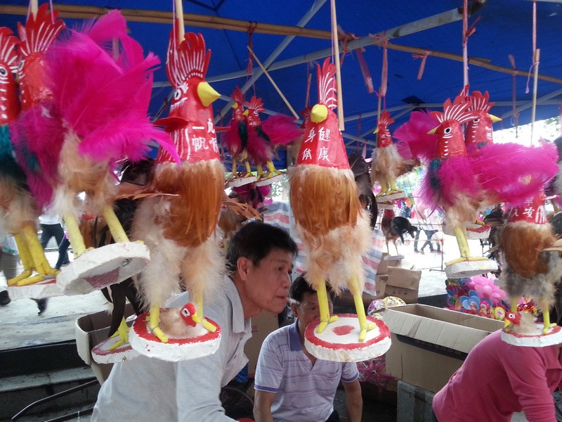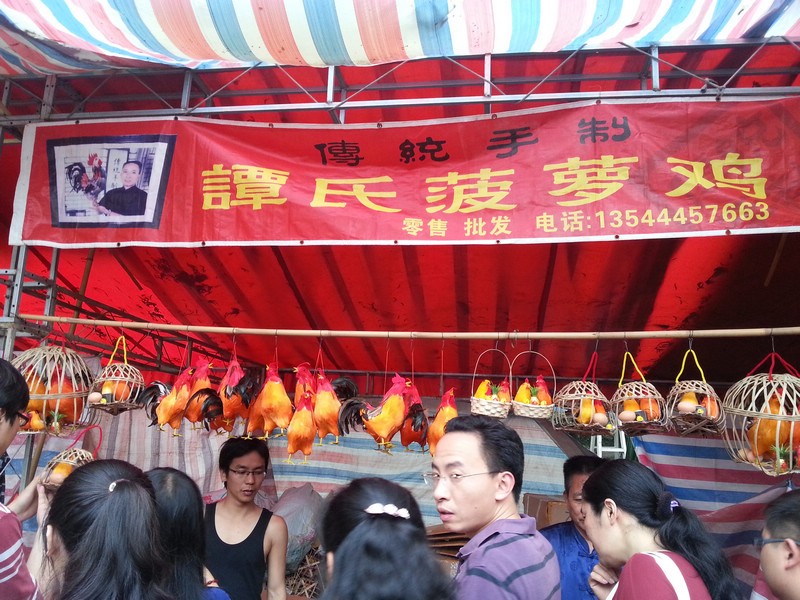 波罗诞买波罗鸡,是广州人的“保留项目”。这波罗鸡并非真鸡,而是一种工艺品。传说旧时,波罗庙附近一条村,有个张姓老妇,无儿无女,只与一只大公鸡相依为命。村外有个有钱的员外,酷爱斗鸡,对张老妇的雄鸡早有所闻,派人要那只雄鸡与他的较量,被老妇拒绝。员外不甘心,偷偷地拿了自家最威猛的雄鸡去斗,结果被杀得一败涂地。员外出高价想买老妇的鸡,仍被拒绝。他恼羞成怒,一天,趁老妇下田之机,派家丁将雄鸡偷了回来。谁知,这只鸡从此再不啼叫。员外一怒杀了它。伤心不已的老妇将鸡毛一根根捡回家,洗净晒干,用黄泥作鸡身,纸皮作鸡皮,把鸡毛一根根粘上去,说也奇怪,粘上去的鸡栩栩如生,第二天早晨,老妇又听到雄鸡在啼叫。她高兴至极,又做了不少这样的鸡,留下最心爱的一只,其余的都拿到波罗诞卖。波罗诞上买波罗鸡的习俗就这样流传下来。