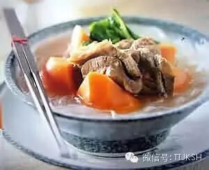(3)锅中放入烫过的瘦肉块,加姜片,大火煮开,然后改中火煮30分钟,最后加入胡萝卜继续煮至熟烂,依个人口味加盐即可。