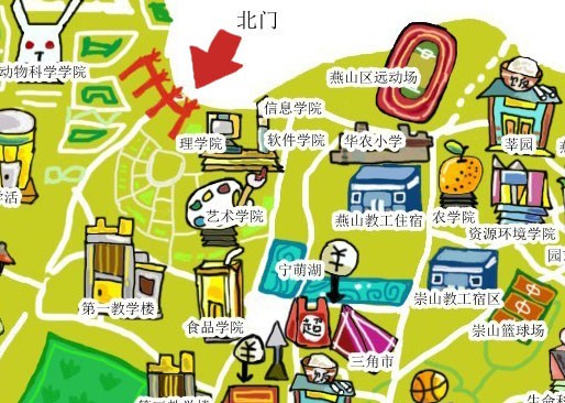 ▶华农面积很大,一天时间可以选2个地点,建议游玩路线: