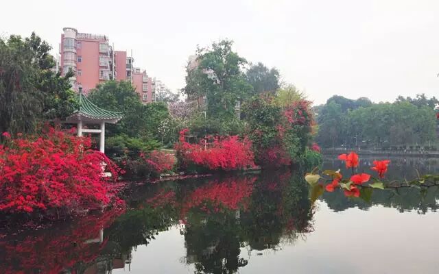 桥的两边均种植有大量的洋紫荆,故命名为“紫荆桥”。这里是华农的五山学生公寓和东区球场位置所在,除了看紫荆花外,可以在这里看到很多潮气蓬勃的学生,还可以在漂亮的大球场上跑一圈哦。游泳池旁边有学生饭堂芷园,可以在这里买饭票重新感受学生时代吃饭堂的感觉,瞬间穿越回学生时代了,有木有?
