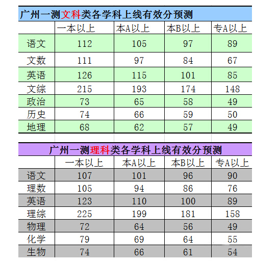 这是钟阳老师给的“广一模”总分有效分、各层次有效分、各学科有效分的全部资料,堪称最“高大全”、最精准的“广一模”定位!不多说了,该抹泪的抹泪,该努力的努力。