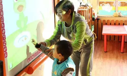 ↑↑张老师带着孩子们做活动前的律动操,然后带孩子们进行了一节小班的认知活动:游戏中识数字,并且同孩子一起互动,因为电子白板的运用,孩子可以动手操作,使得课堂气氛非常快乐融洽。
