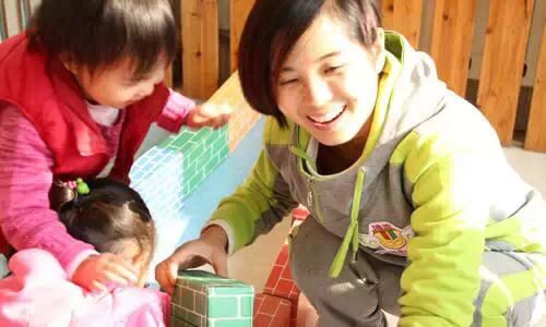 ↑↑因为要分组彩排,在小女孩们排练节目的时候,张老师陪同小男孩们一起玩积木。