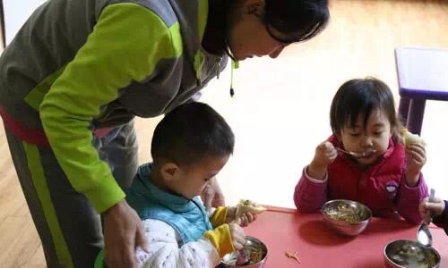 ↑↑老师们忙完这一切,12:30才开始吃自己的午饭。有时饭打来了,为照顾孩子午睡,老师们也来不及吃。