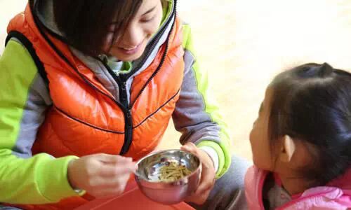 ↑↑小班的孩子吃饭的比较慢,老师们会很细心地给孩子喂饭。孩子们的进餐习惯在家里就养成了,到幼儿园老师们需要逐一纠正。张老师说,对待他们,就像对自己的孩子一样。老师在看着孩子的时候,嘴角都是隐藏不住的笑意。