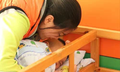 ↑↑安抚完孩子睡觉,保育老师孙老师还要照顾生病的孩子,吃药。