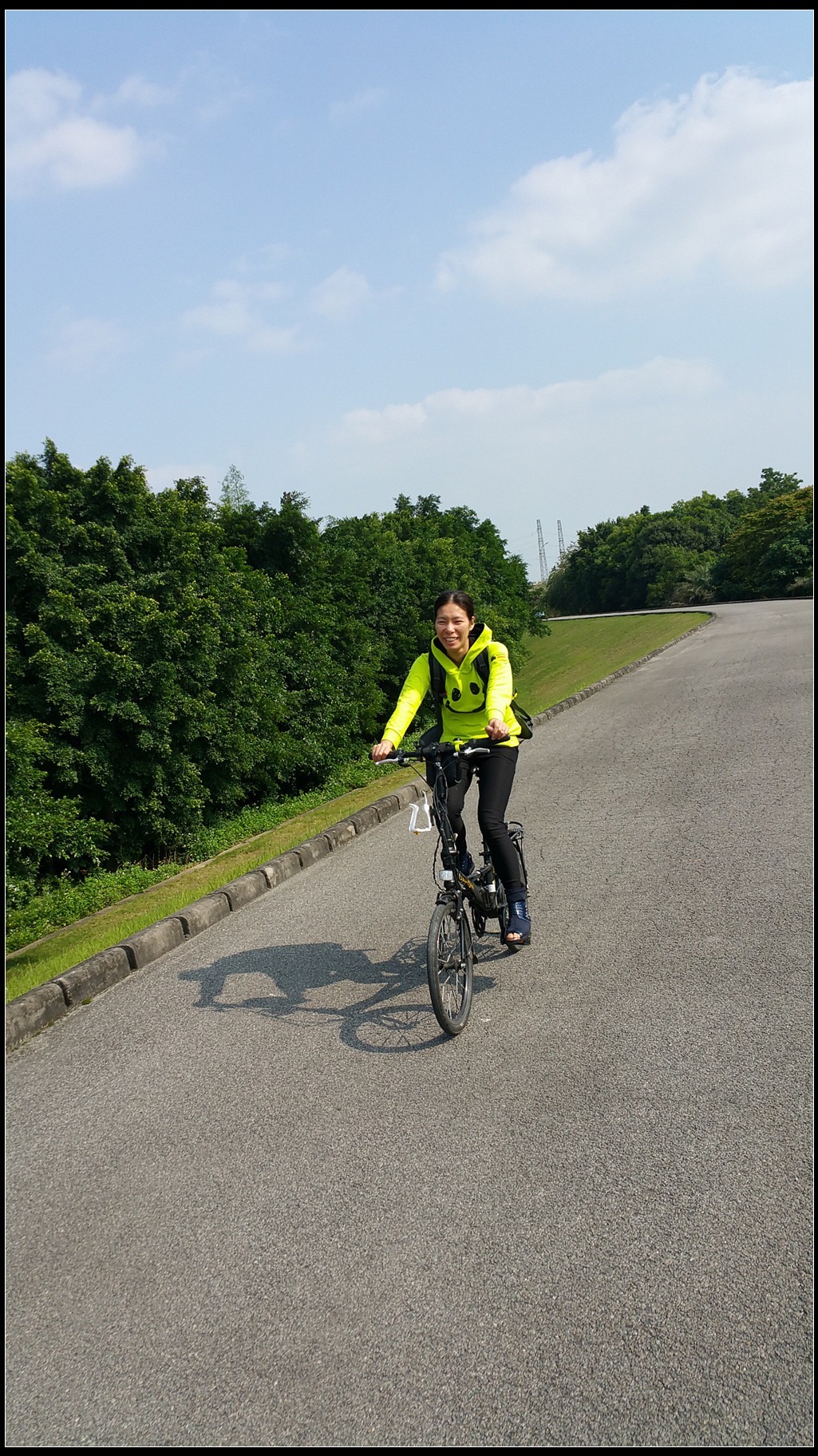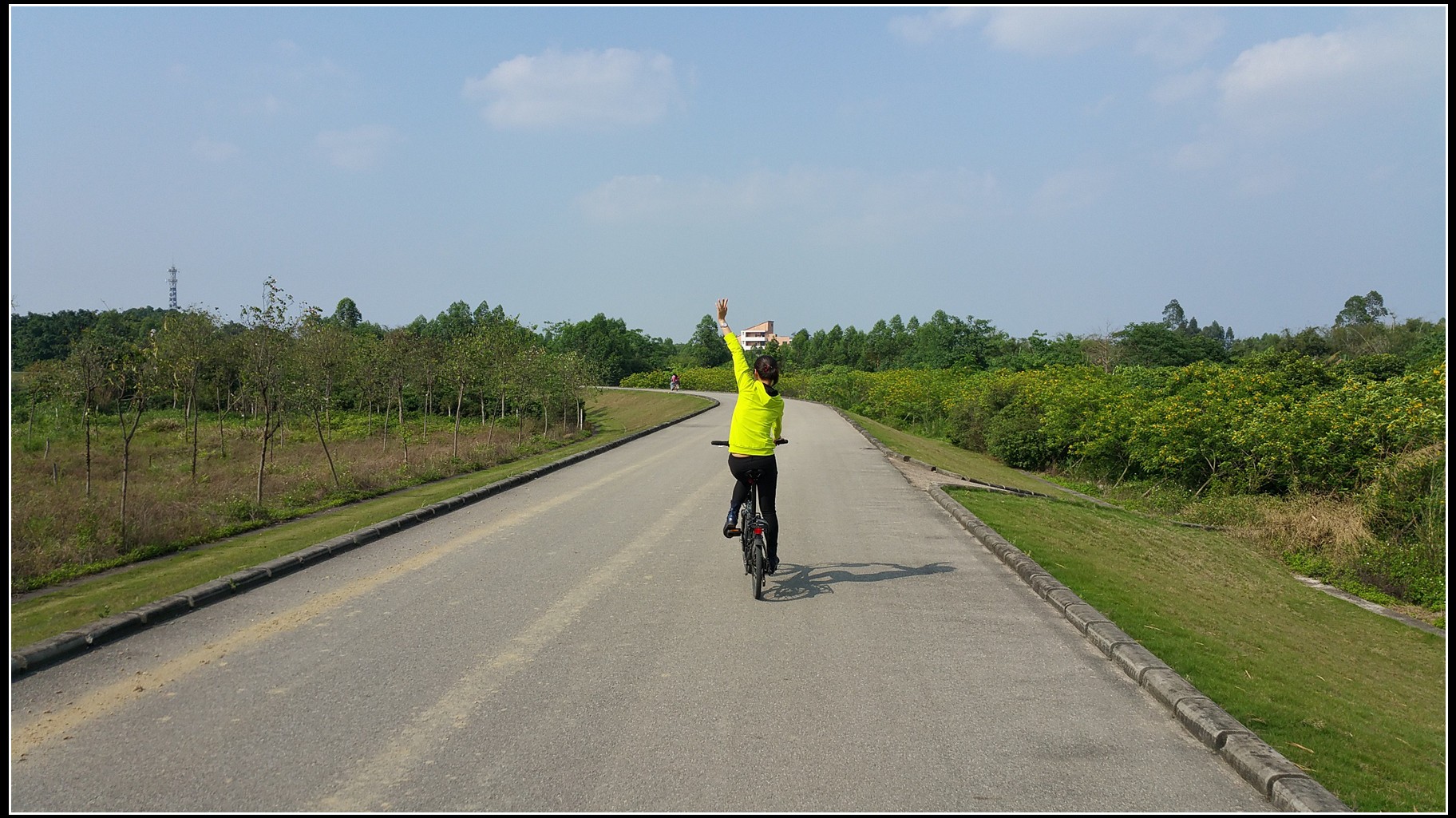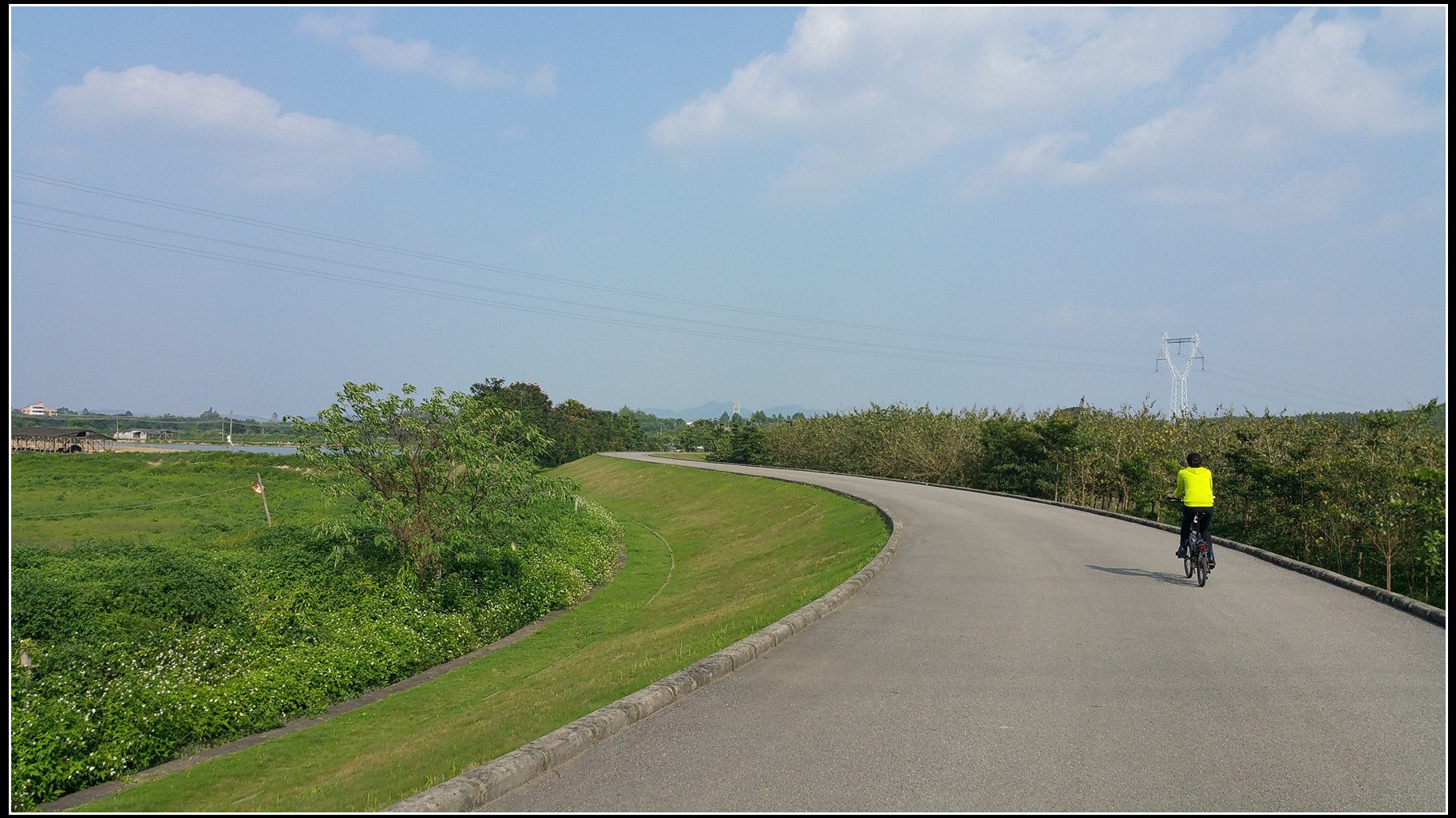沿着河堤骑行,基本上没有汽车,安全可以放开来骑。