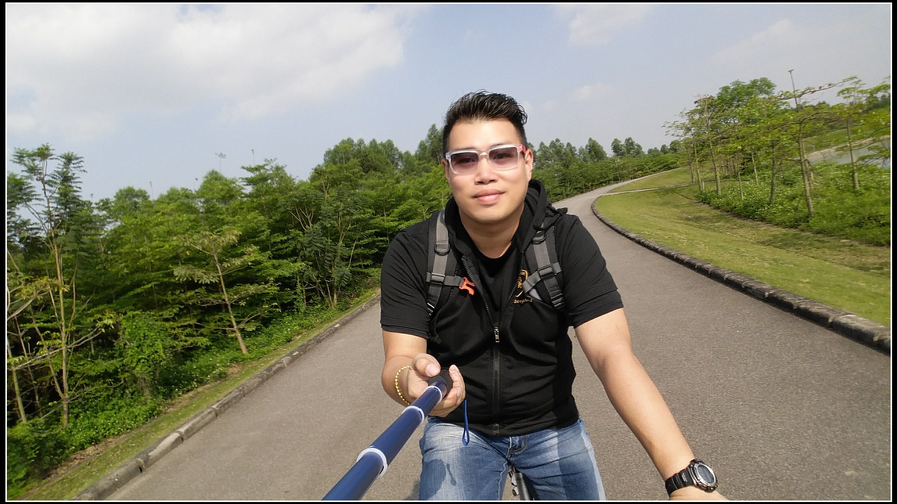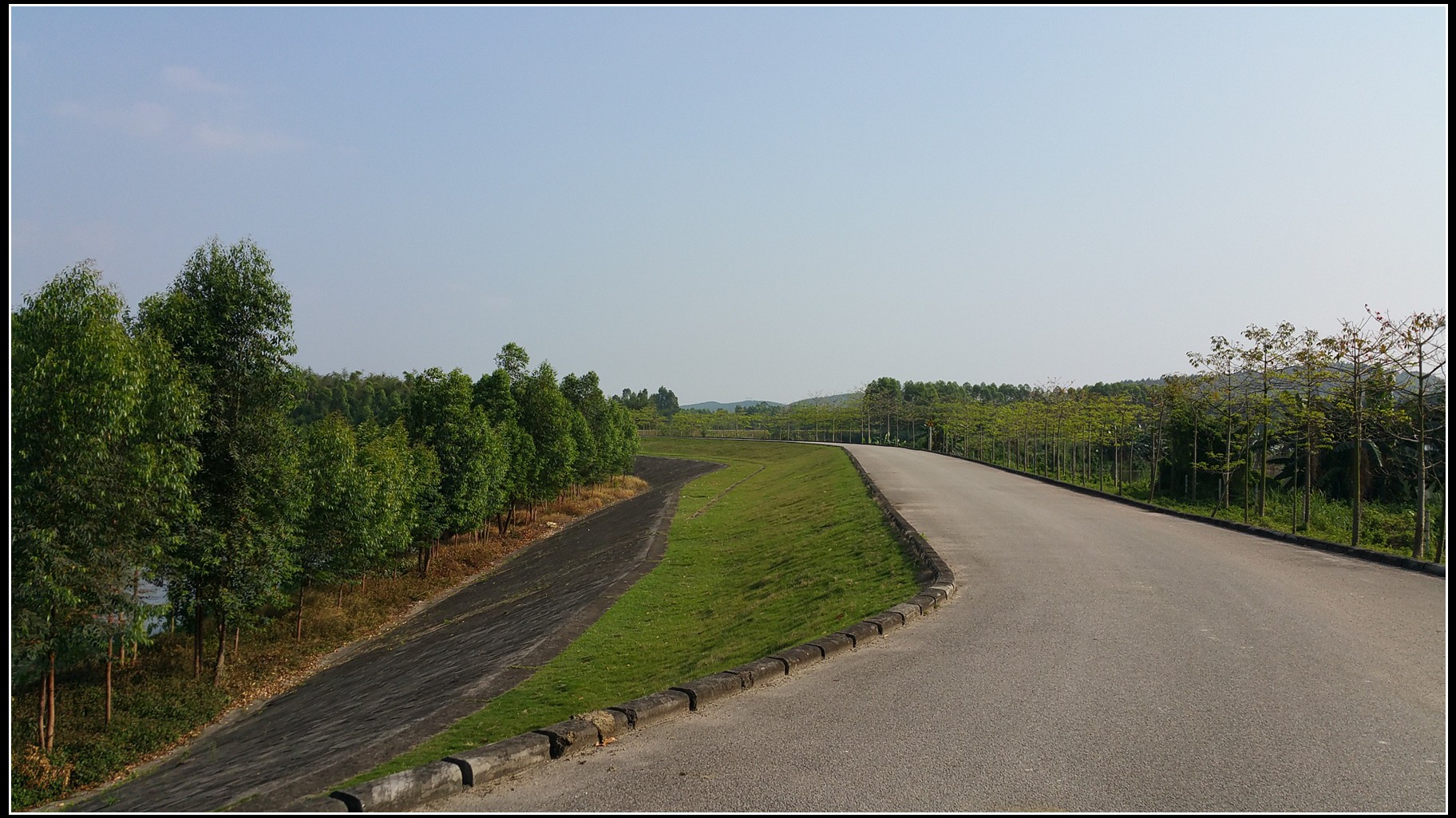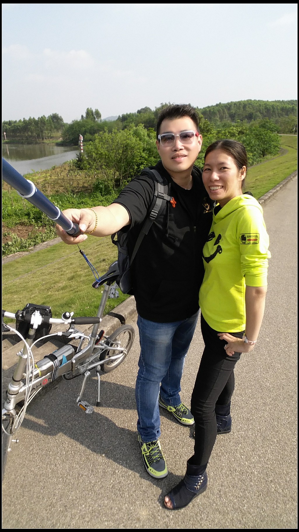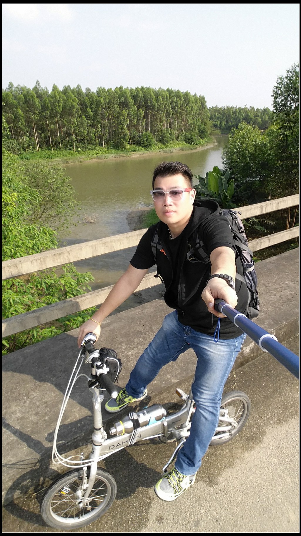 沿着河堤骑行,基本上没有汽车,安全可以放开来骑。