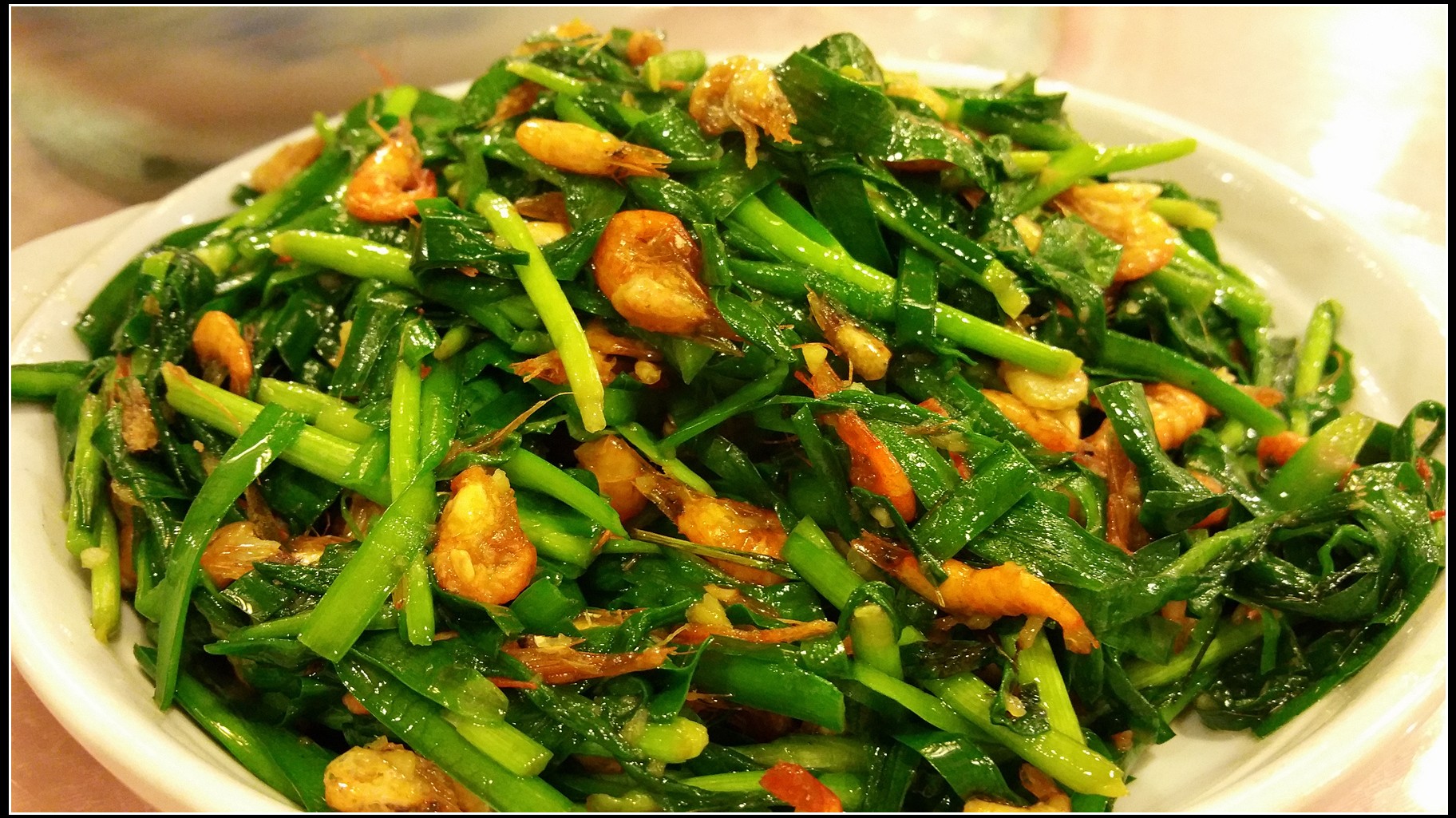 韭菜炒河虾仔 28元 ,河虾份量很足。