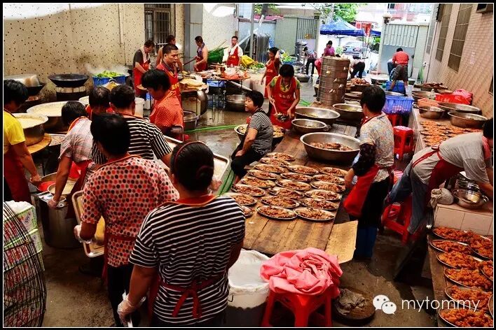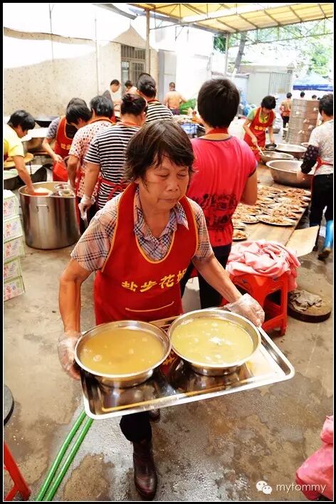 龙船饭是珠三角地区水乡龙船文化的重要一环,对于村民来说,划龙舟是对神的敬仰,龙船、龙帽龙船衫、龙船饭都被视为神圣之物,寓意一种好意头。吃过龙船饭,一年都会风调雨顺,五谷丰登。所以,除了比赛的人以外,村中上下老少都可以到祠堂吃龙船饭。