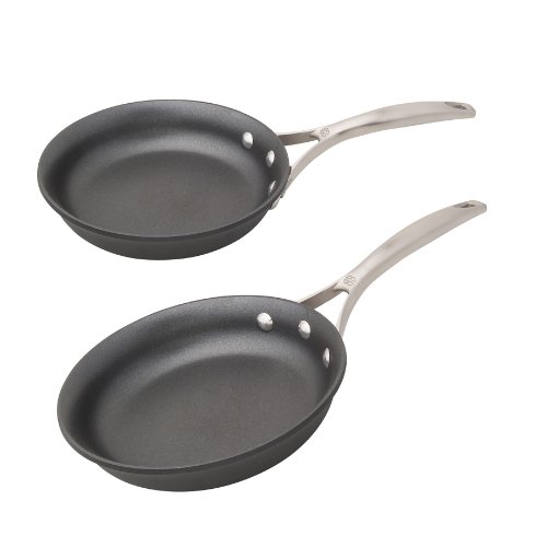 现美国亚马逊降至$41.64,可直邮,运费$16.33Calphalon是美国顶级的锅具品牌,创立于创立于1963年,其每年卖出超过七百五十万个锅具!在美国市场占有率高迖49%!Calphalon产品在美国高级锅具类别排名第一!可惜还未进入中国市场,但是档次上比双立人高!这款Calphalon卡福莱不粘滑壁煎锅套装包含了8寸和10寸各一个,属于Unison系列,宽平的锅底,受热均匀,倾斜式设计让翻炒颠勺更易,坚固的不锈钢长手柄隔热防烫不滑手。特殊纹理对于烹饪牛排、鱼块、蔬菜等带来褐变焦化感,增添食欲,可机洗方便清洁。适合煎炒食物,煎蛋、制作酱汁都手到擒来哦!