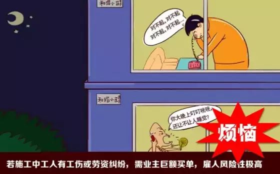 雇游击队施工属违法行为,若有邻居举报会被处以上千元的处罚;若施工中工人有工伤或劳资纠纷,即使事先有书面约定,还是无济于事,需业主巨额买单,雇人风险性极高,这样的案例每年都不少。