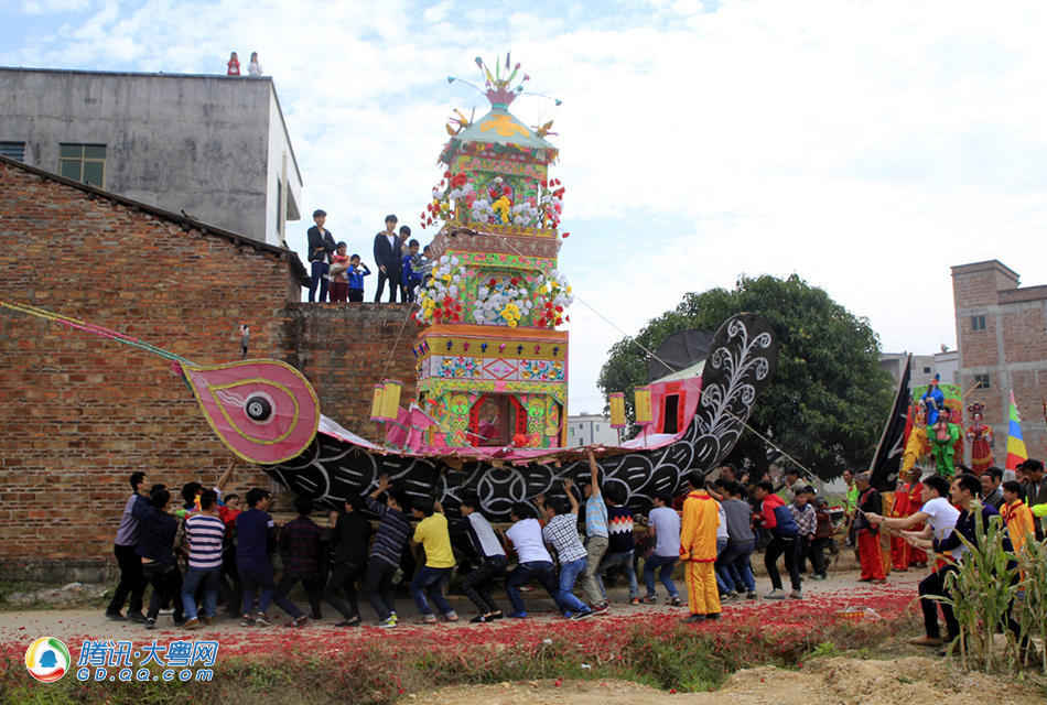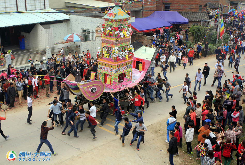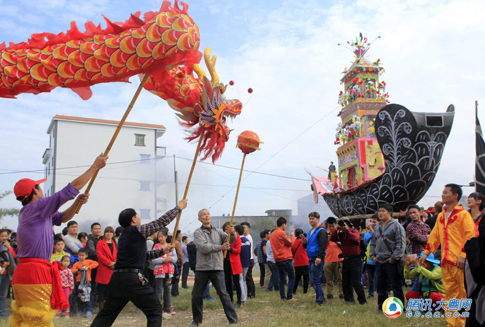 [p=25, null, center]除了游大船,传统的舞龙也为年例活动增加不少欢乐气氛。 (来自:腾讯大粤网)