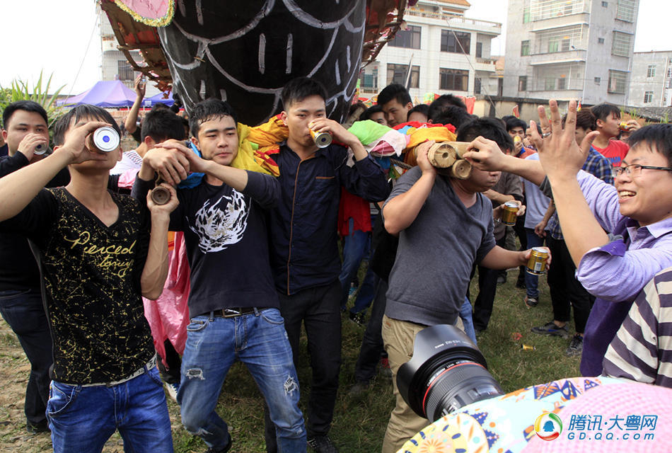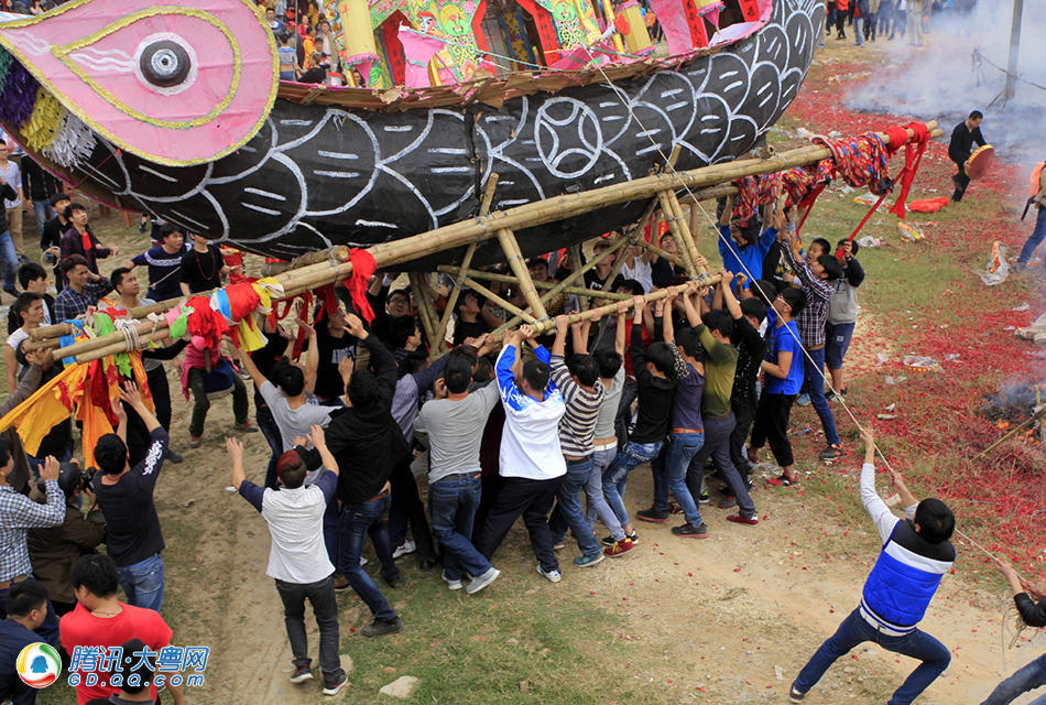 [p=25, null, center]抬起大船,在草坪上来回走上几圈,村民们个个汗流浃背,气喘嘘嘘。 (来自:腾讯大粤网)
