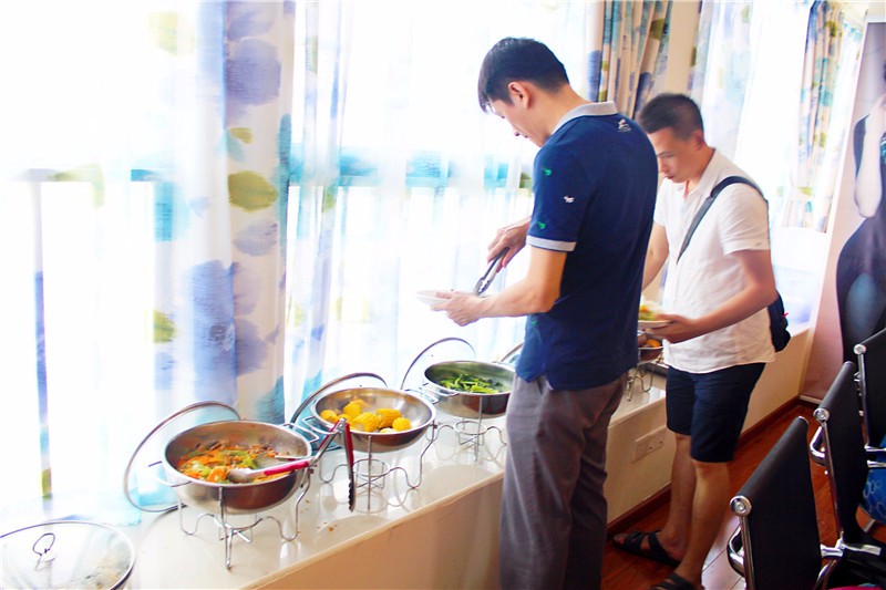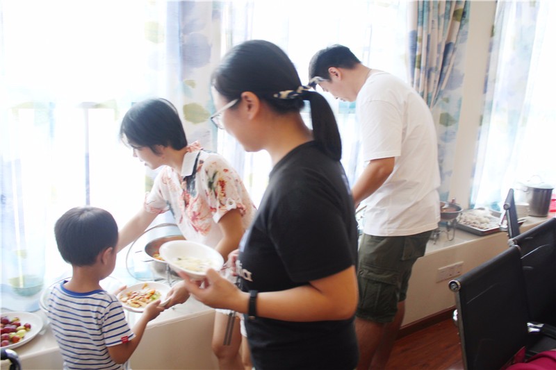 其他家属可以自行选择自助餐,你看,这么多宝爸都忍不住动起来就餐了