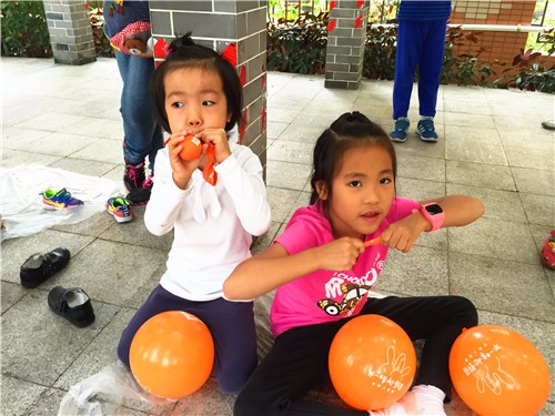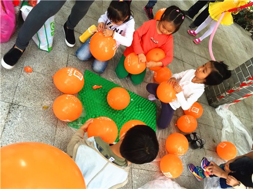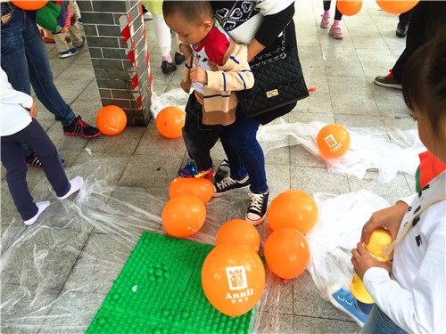 小朋友们踩气球非常欢乐~都是大胆敢做的娃儿!