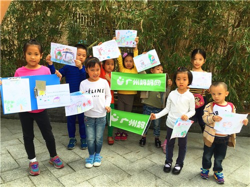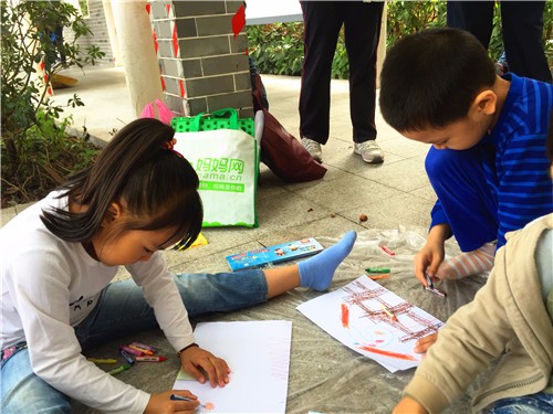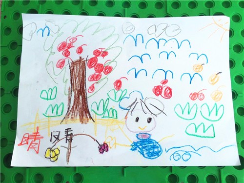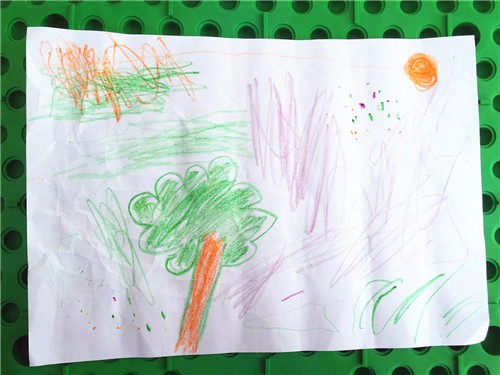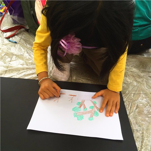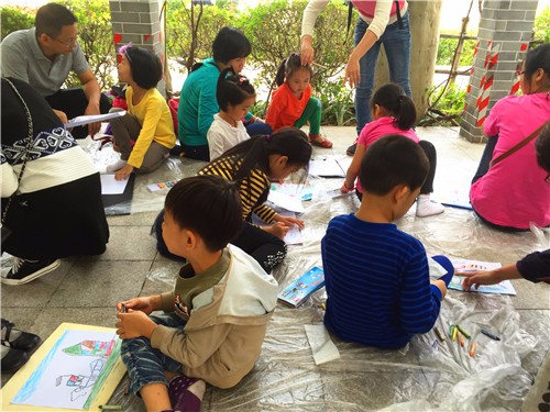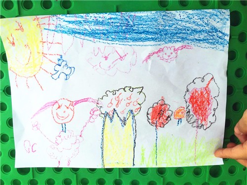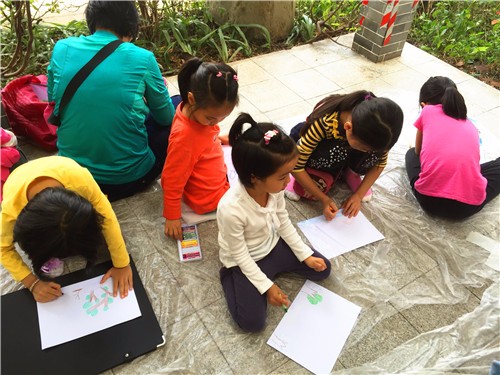 小朋友都很认真地用不同颜色的蜡笔绘出风景