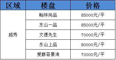 越秀区位于荔湾和天河之间,而房价起伏变化也不大,基本集中在7-8.5万/平区间。