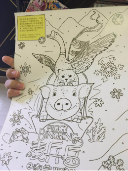 电影散场出来后孩子们很高兴,两个小家伙一直在叽叽喳喳说着“兵兵”、“布飞”和“恩迪”。电影院里有工作人在发《麦兵兵之夺宝联萌》的填色画,给孩子们拿了两张,这股“麦兵兵热”估计得在家里持续几天了,哈哈。