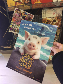 提前10分钟检票,入场后发现几乎都是大人带着孩子来看的,简直是家庭专场,孩子从3岁到10岁多的都有。电影比我想象中要有趣得多,有点像动物版的“猪在囧途”。小猪麦兵兵为了寻找主人的权杖一路来到城市,先后经历被人追、被圈养、被出卖、被diss、被拯救、最后逆袭等等一系列不可思议的事。搭配贪财又市侩的大鹅布飞和冷静又傲娇的猫恩迪。三个动物组团斗坏人,笑果加倍。