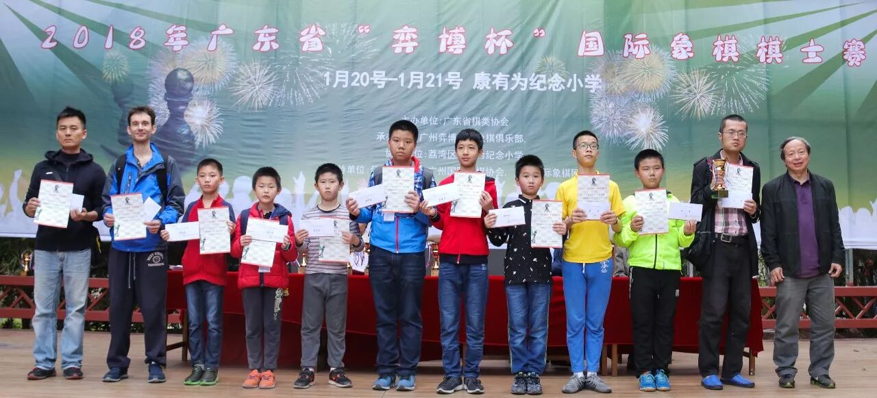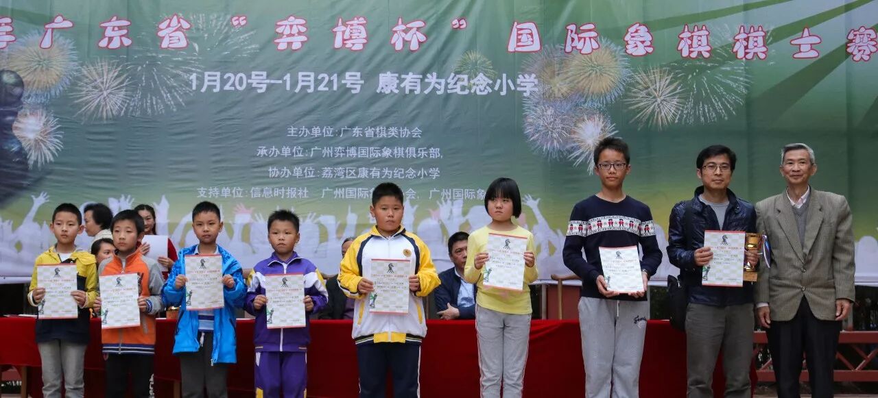 本次比赛得到广州市国际象棋协会和康有为纪念小学的大力支持,总共有521名棋手参与各组别的角逐,其中公开组有48名棋手参与,竞争非常激烈,最终来自深圳的国际大师李博夺得桂冠,并摘得2200元冠军现金;韩俊程、陈天洋分获亚军和季军。