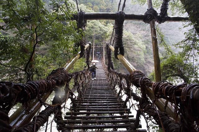 这座桥厉害了,是日本三奇桥之一,是千年的藤蔓纠缠而成,据说本来有十三座,在时间冲刷下只剩下三座。
