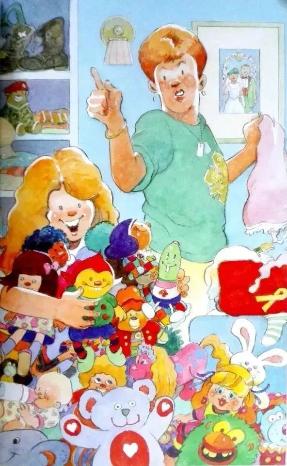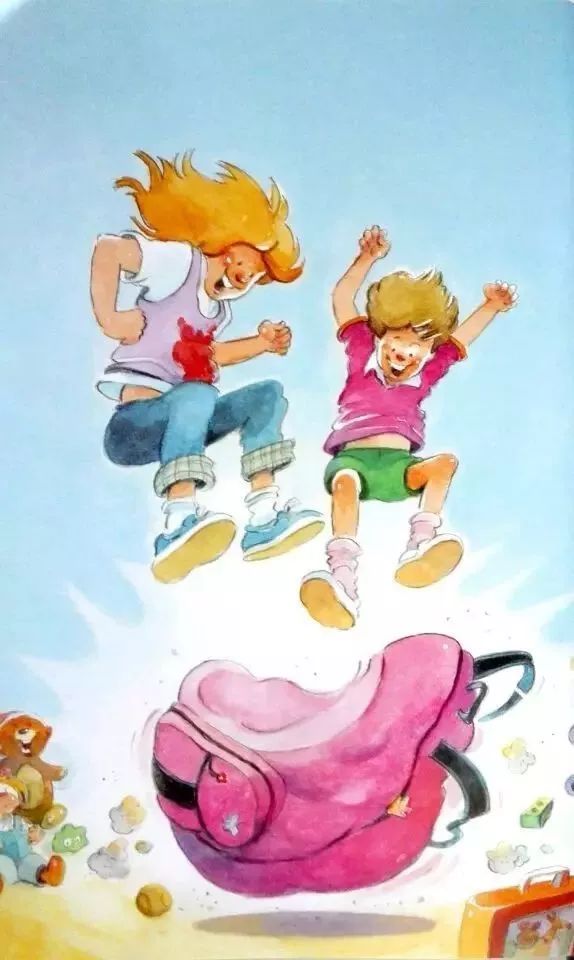 可是特米娜想把自己的娃娃和玩具都带上,于是她想尽办法把自己的玩具都塞进了书包里。