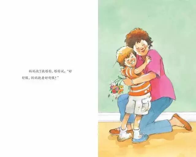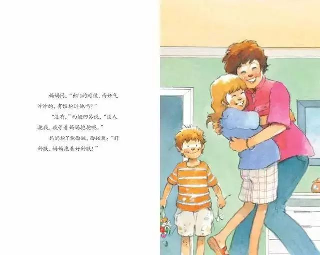 于是妈妈也给了西娅一个抱抱,西娅说:“好舒服,妈妈抱着好舒服。”