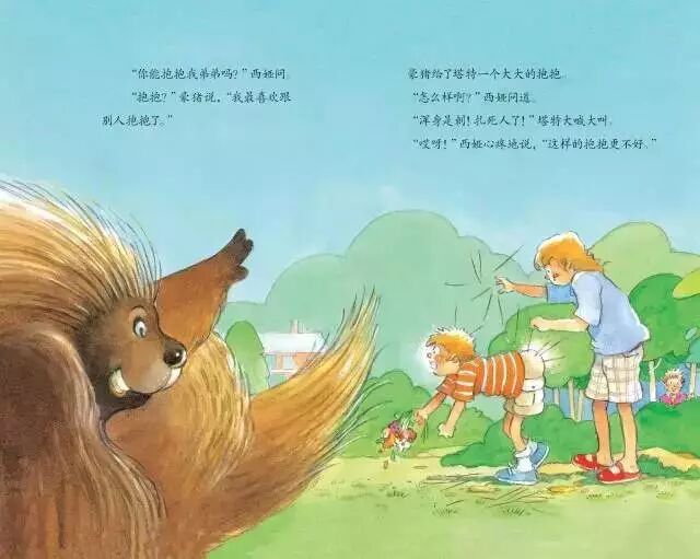 接着,西娅和塔特见到了一只豪猪,给了塔特一个大大的抱抱,塔特觉得混身是刺,好难受。