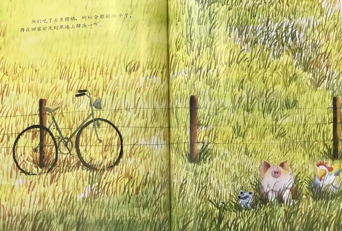 他们吃了好多好多樱桃,所以大家都闹肚子了,得在回家前到草地上解决一下。