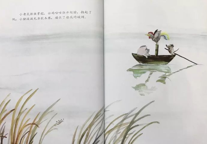 他们来一场探险的航行,可是船上有一个破洞,三个好朋友商量后,由小老鼠强强负责划桨,小鸡咕咕张开翅膀扬帆,小猪波波而坐在破洞上,充当软木塞,堵住了破洞。