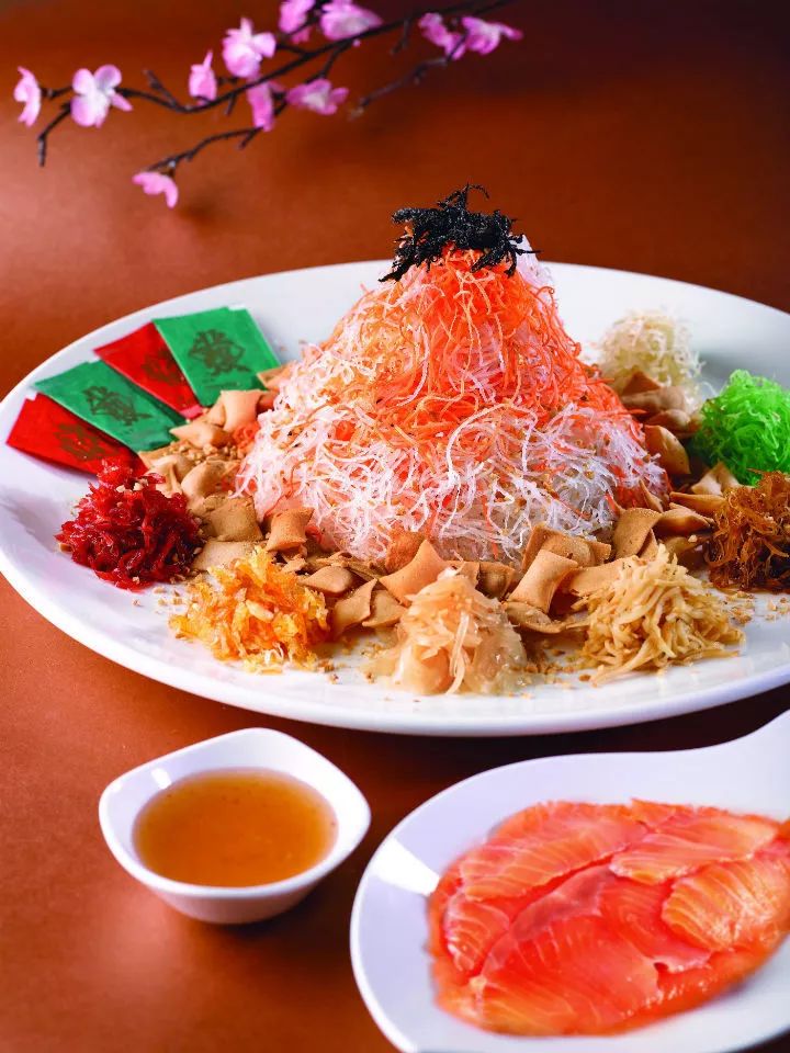 像红萝卜丝就有“鸿运当头”,三文鱼有“年年有余”,花生碎及饼干脆片有遍地黄金,五香粉和胡椒粉有“五福临门”,香油有“财源滚滚”,酸甜酱和桔汁有“甜甜蜜蜜”的意思。