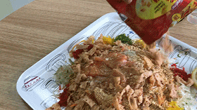 吃起来的味道酸酸甜甜的,配上花生芝麻碎和薄脆饼,口感爽而不腻,一级棒~