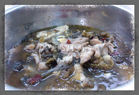 步骤:先将鱼剖开,分开鱼头留作煮汤,鱼身片成片,鱼尾等骨与鱼头一起煮汤;