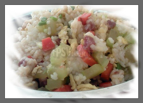 【炒饭】偶的最爱,无论是扬州炒饭、咖喱炒饭、辣白菜炒饭。。。所以偶就弄了个杂菜炒饭,想吃什么就往里面放。。。