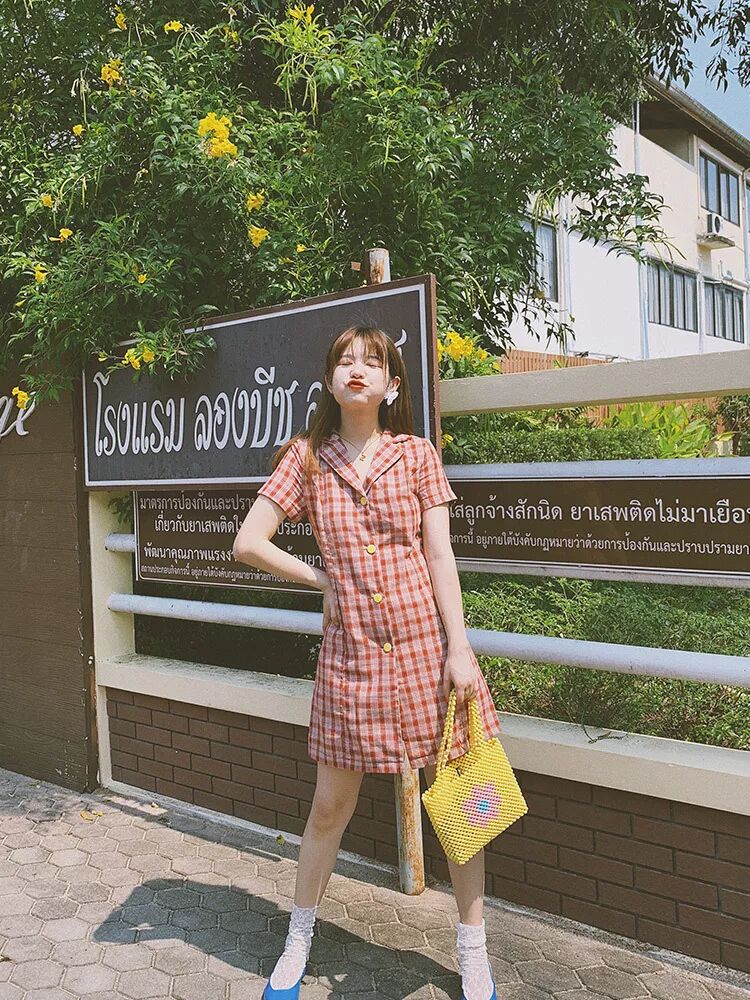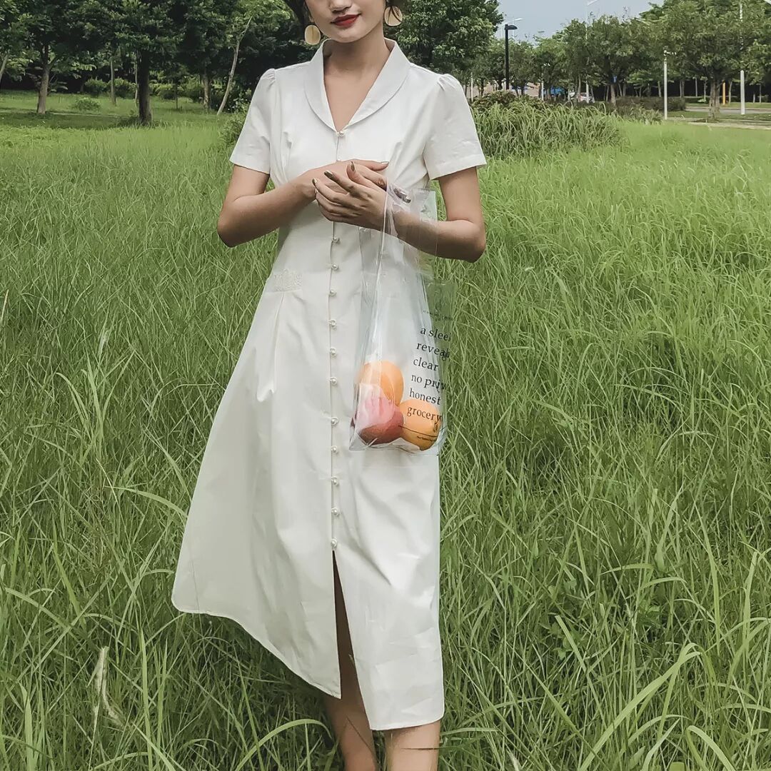 经典排扣裙最近也是hin流行,加上今年法式风情的裙子特别风靡~两者相结合,更加具有浓浓的复古法式风。