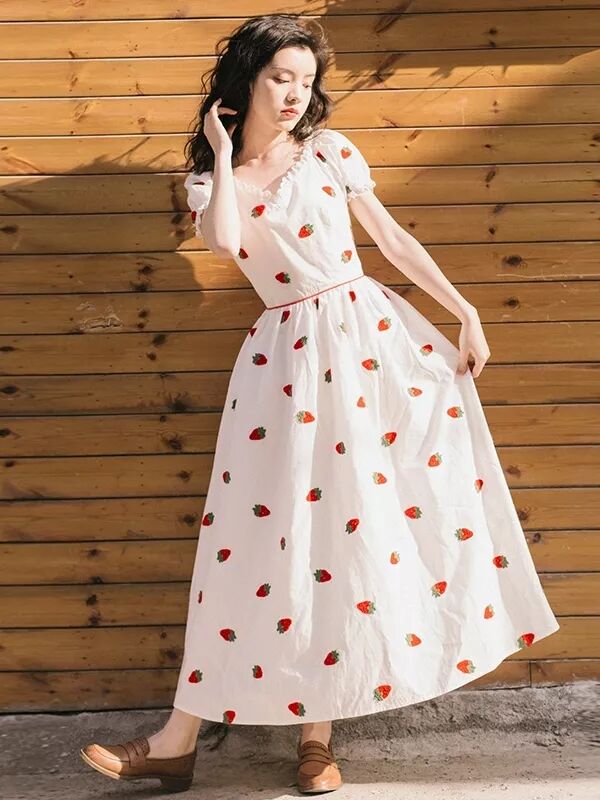 草莓刺绣印花收腰连衣裙 | |