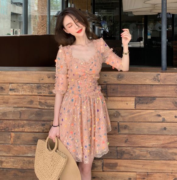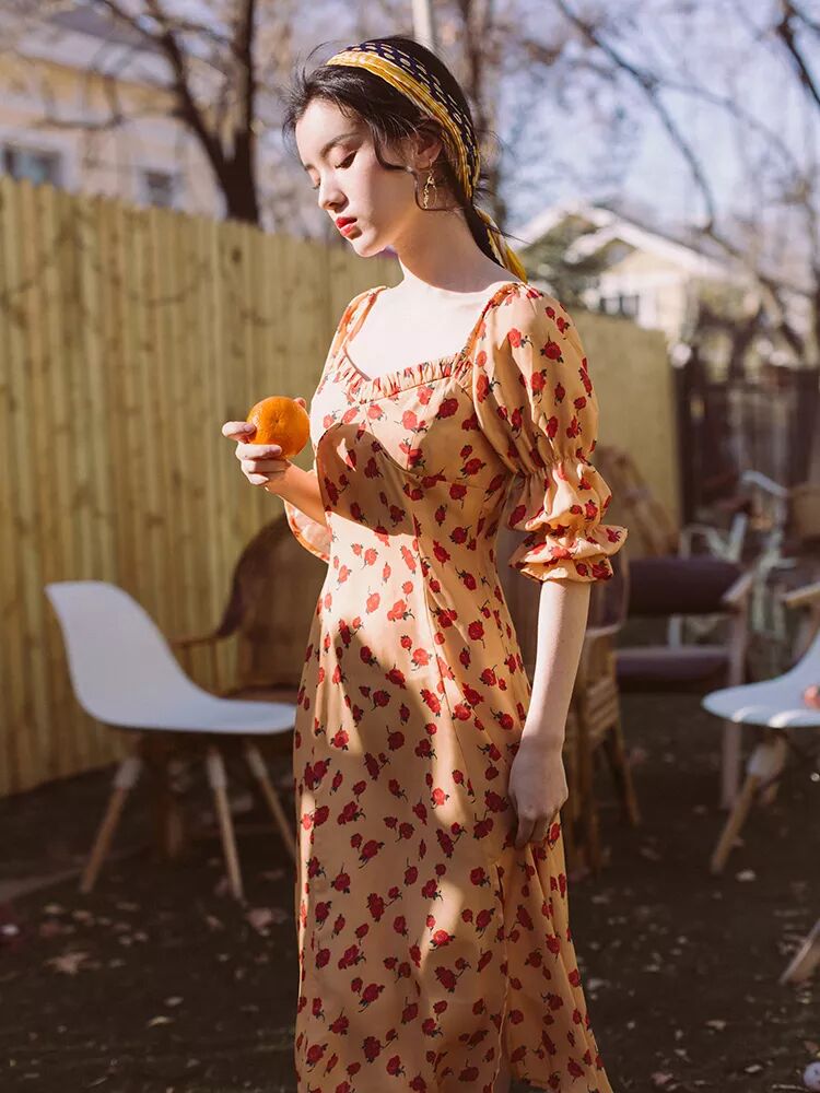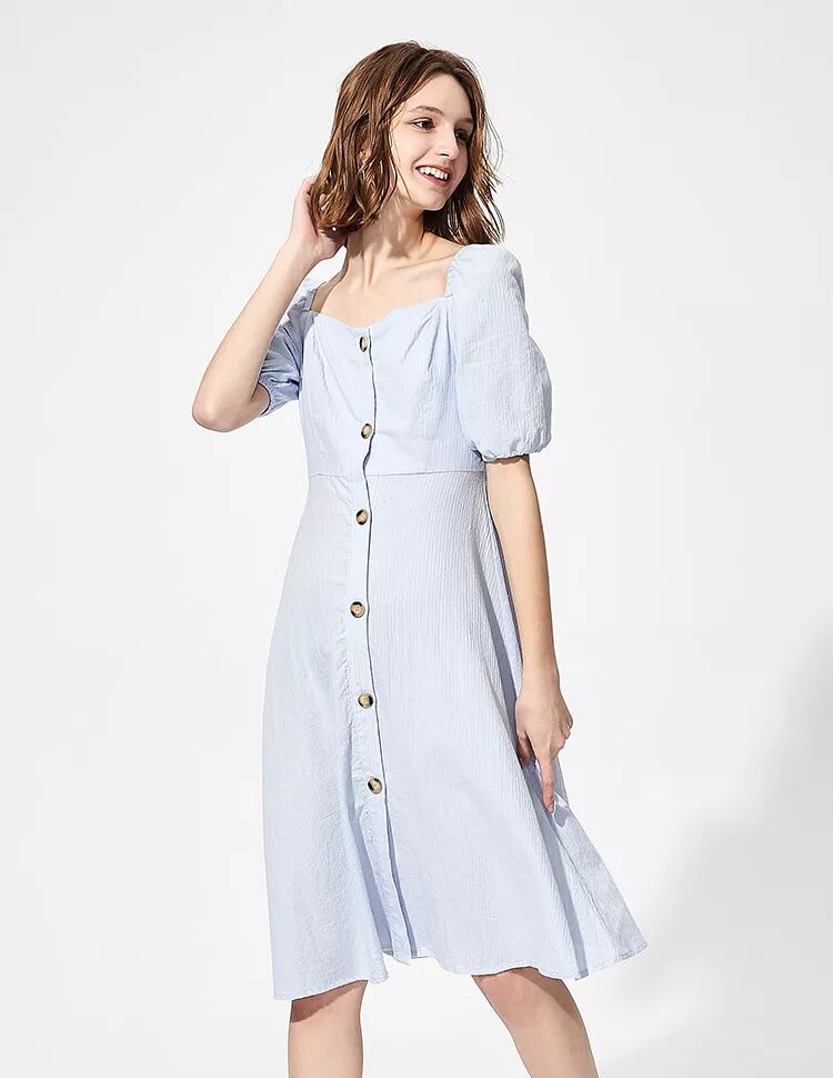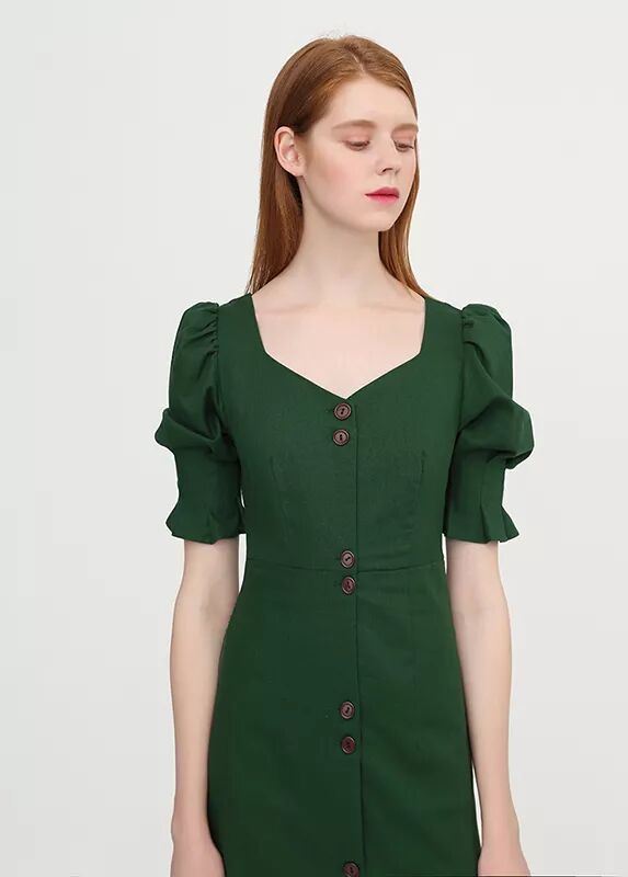 心形领复古连衣裙可以说是今夏大热单品了,排扣设计加上泡泡袖更有宫廷复古感。它是方领的plus版,但比方领多了些线条感,更能展现女性的魅力,连衣服都是爱你的形状!