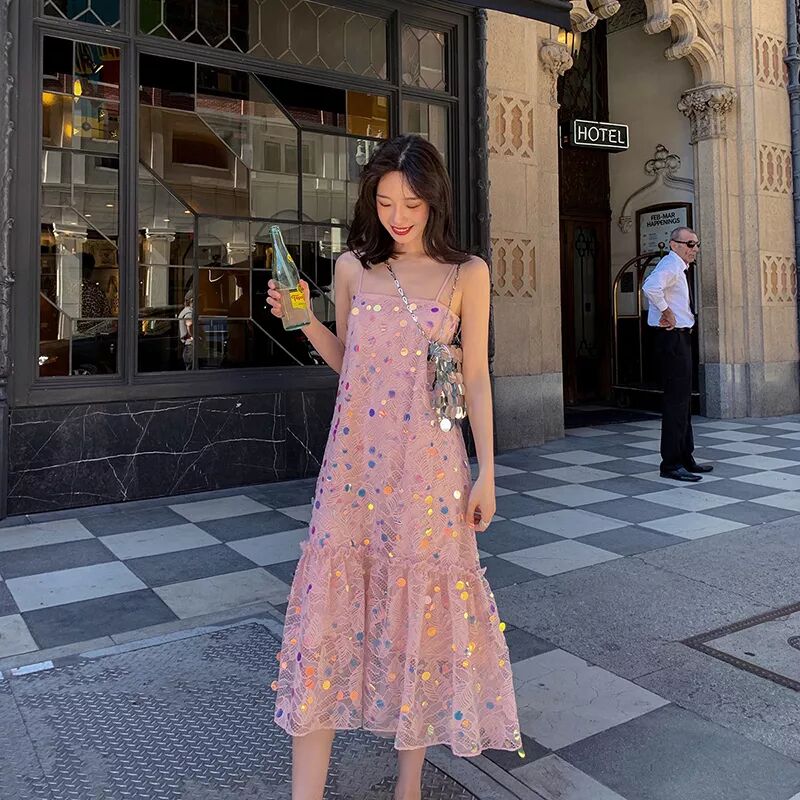 轻纱材质的仙纱裙加上黄色背心真是太太太太适合夏天了!还有blingbling的亮片裙,亮片丰富了整体裙子的立体感,特别出彩。