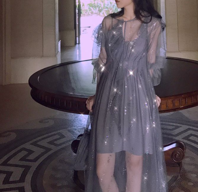 熠熠繁星两件套度假网纱裙 | |