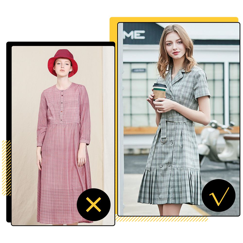 它不仅会在视觉上增加膨胀感,看不到腰线,反而显得更加壮。腰线是能够为你加分的选项,还能拉长下半身比例,因此连衣裙还是要选择修身有腰线为宜。