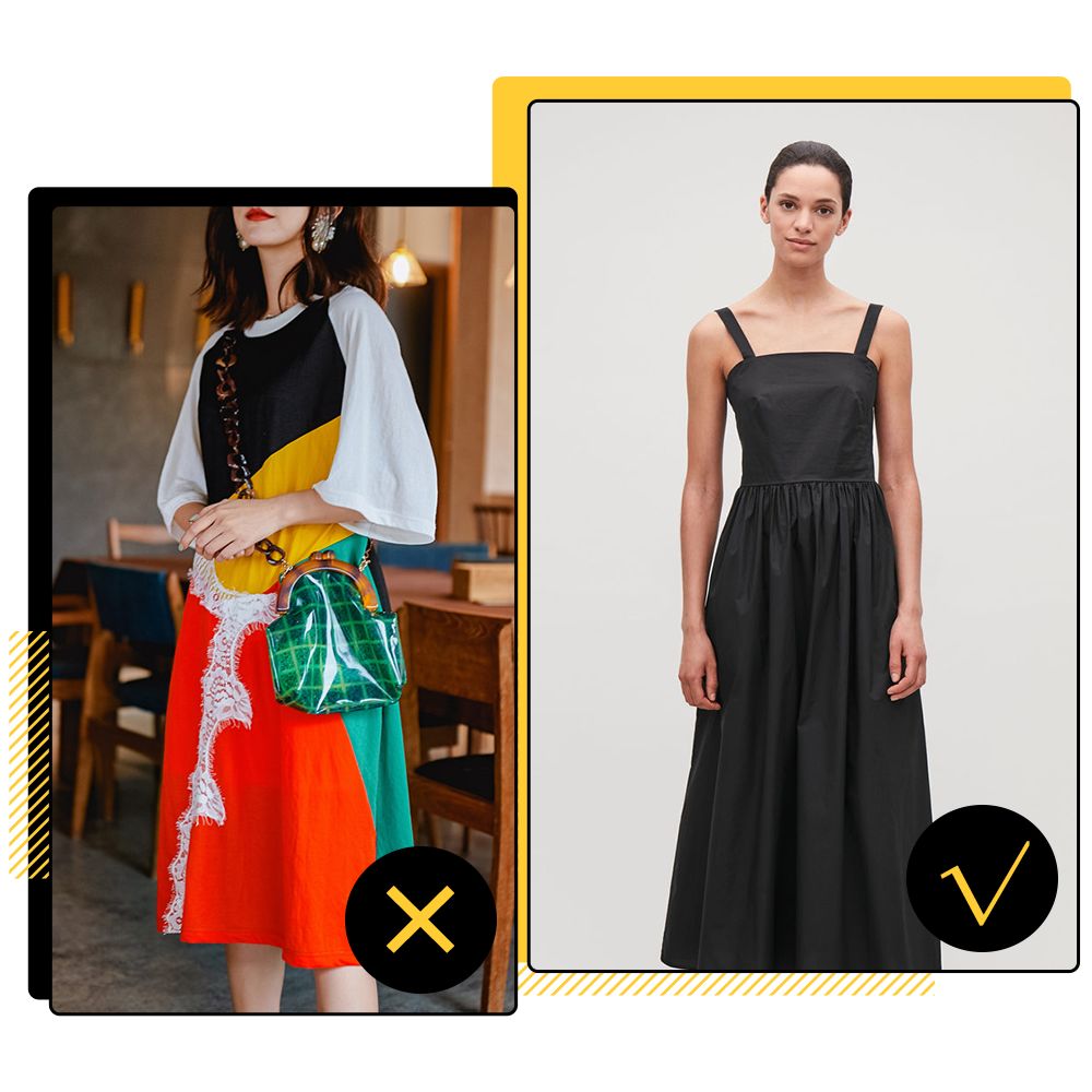 大面积的拼色的连衣裙把身材分成了一截一截的,而且在视觉上会显得不够高级,刚入门的仙女们最好选择同一种颜色或者不要超过三种颜色的连衣裙。保持连贯性,也会更加显高显瘦哦~