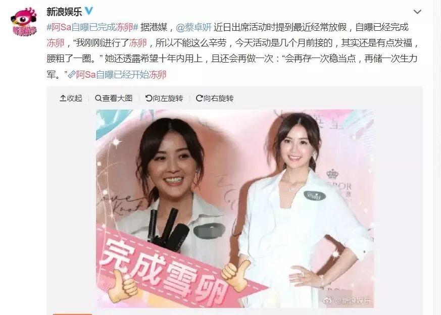 阿sa也在采访中表示计划再做一次冻卵。