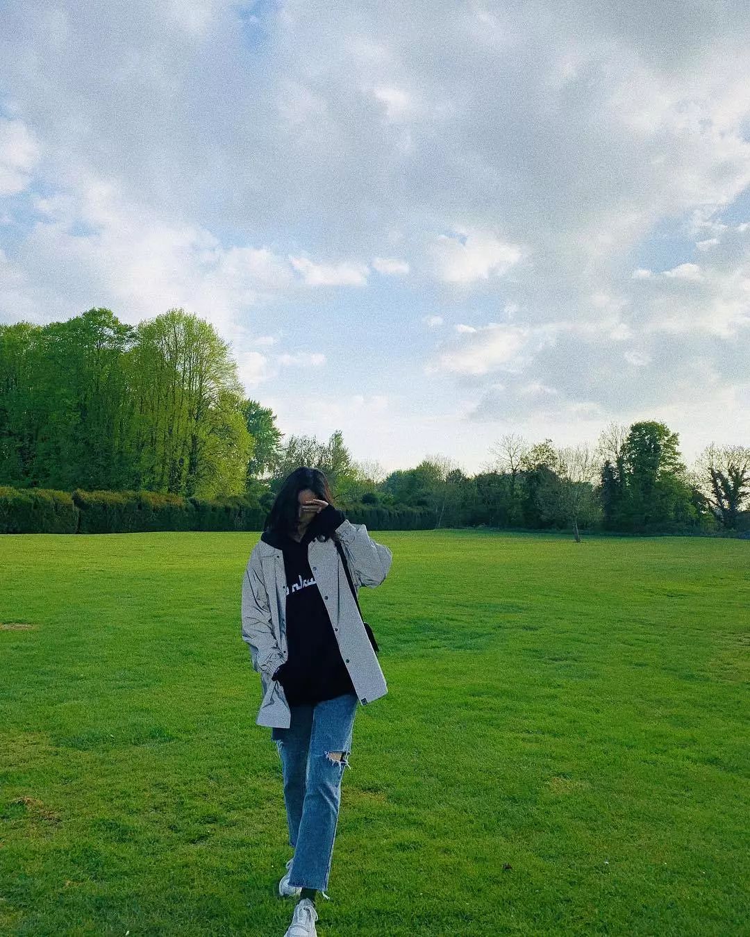 刘雯的这套卫衣+牛仔裤+小白鞋的造型复刻性很高,日常休闲的穿法搭上小白鞋后满屏的时尚感!