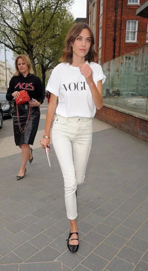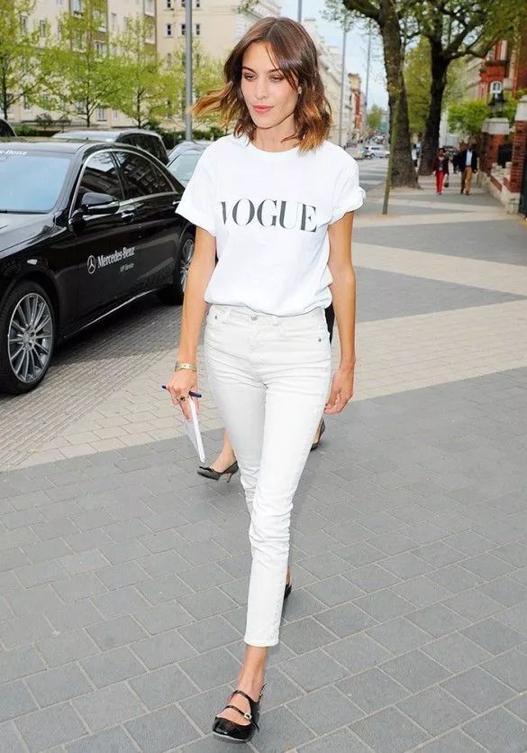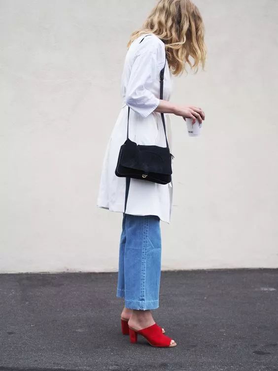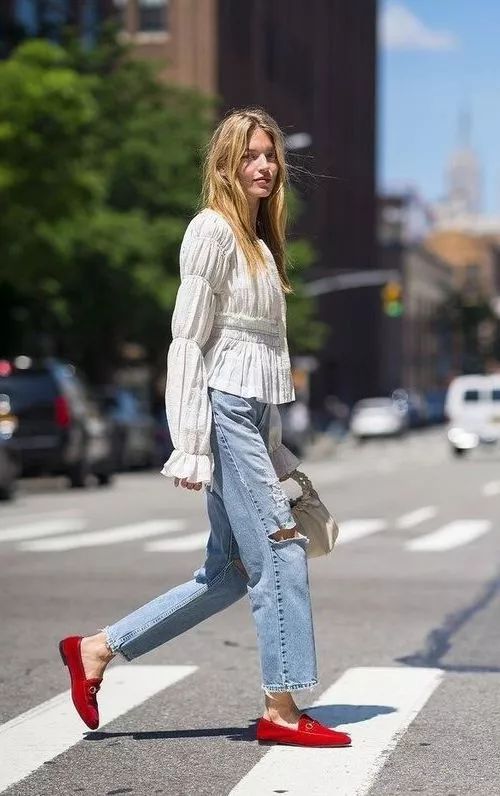 浅色的鞋子简简单单就能给予造型时髦灵魂。