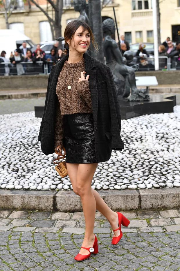 不同的鞋款会影响身材比例,像Jeanne的造型,方形加上粗跟的玛丽珍鞋款,有没有觉得她的腿型看起来没那么细长呢?再看看钟小姐的造型。
