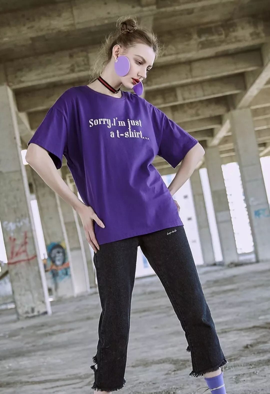 ▼紫色T恤搭配牛仔裤可以打造出炒鸡休闲不失高级的感觉,任何肤质都可以驾驭~